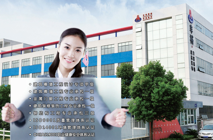 公司現(xiàn)具備建筑幕墻工程設(shè)計專項甲級資質(zhì)、建筑幕墻工程專業(yè)承包一級、建筑裝修裝飾工程專業(yè)承包一級、鋼結(jié)構(gòu)工程專業(yè)承包三級、建筑門窗行業(yè)資格產(chǎn)品制造一級、建筑門窗行業(yè)資格產(chǎn)品安裝一級、江蘇省標(biāo)準(zhǔn)化窗推廣證企業(yè)。